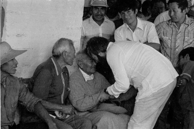 - Jürgen Riester saludando a Bonifacio Barrientos Iyambae